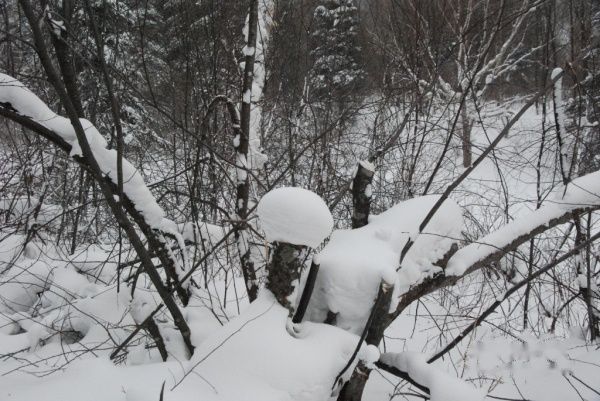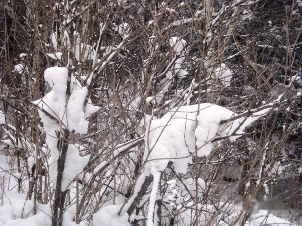 踏进山中。山路逐渐难行起来,但是景色也开始野起来。朵朵雪花犹如棉花般挂满了枝头,不是一点而是一片,让人不由得慨叹大自然的鬼斧神工。那种景致,那种声势,很难用一个确切的词语来表达。