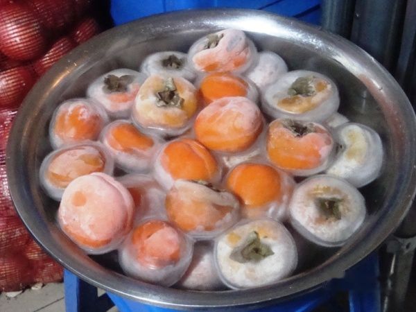电脑旁的大盆里泡了满满一盆冻柿子,看上一眼,我的牙就感觉又酸又冻。