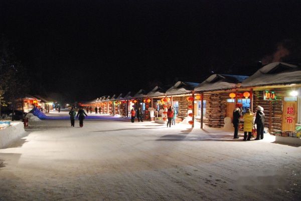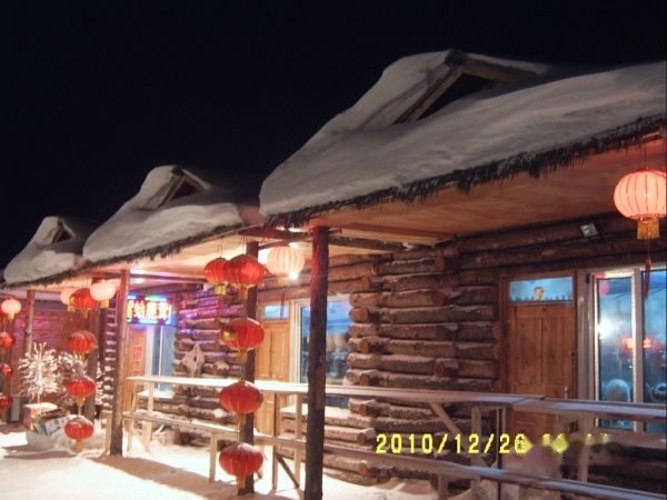 时间也就在这不知不觉中流淌,东北的夜来得早,五点窗外已经漆黑一片了。又到了晚饭时间了,一番饿虎扑食之后,我们决定外出走走,好好欣赏雪乡的夜色。