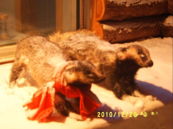 往前走发现好多家小店的门口都有山林精灵。或野兔,或貂。