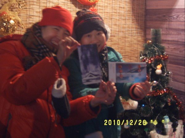 我和Fiona很有默契地互送了一张,大家相约等收到明信片的那一刻再看上面的秘密文字。我特别邀请Martin在这颗圣诞树下为我和Fiona合影留念。好期待这张珍贵的明信片哦!