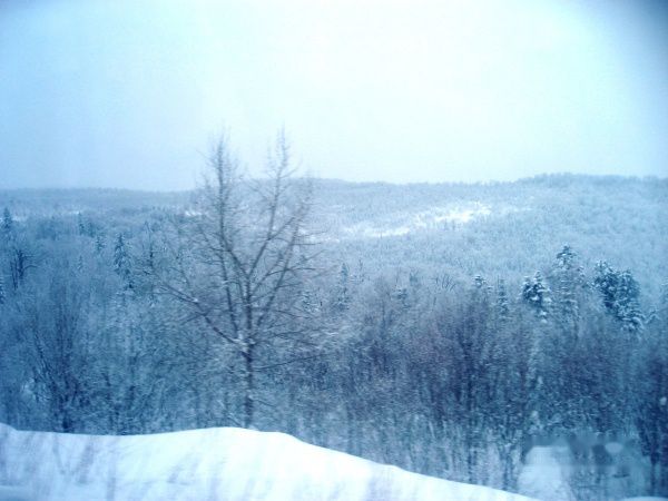 安静的车厢顿时苏醒了,扼杀菲林的时刻提前到来了,大家都纷纷端起相机,摄像机兴奋的记录着这冰清玉洁的梦幻世界。每个人的眼中都闪烁着快乐的光芒,太美了。虽然我家乡的冬天也不乏白雪,可这里的雪还是令我吃惊得有些恍惚。