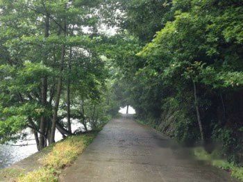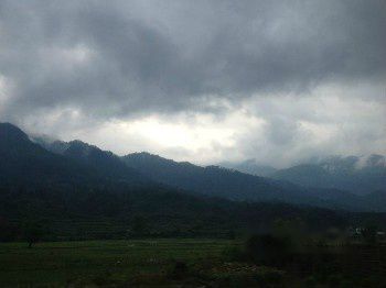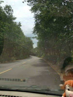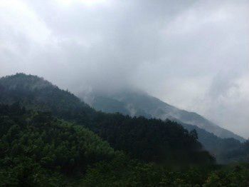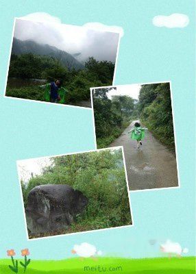 还是那个善良的张爸爸,不放心又不忍心我们两个自己走山路,冒着雨骑着他那辆摩托车载我们到饶南。