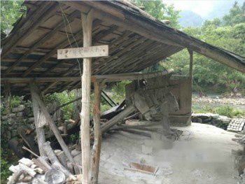 水碓房和淘洗池、制坯房构架均为木结构,淘洗池、制坯房一字排开有三间