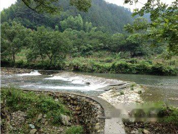 这里是古代水碓作坊遗址,由水坝、水闸、水轮、传动轴、板头、碓头、碓坑和淘洗池等部分组成