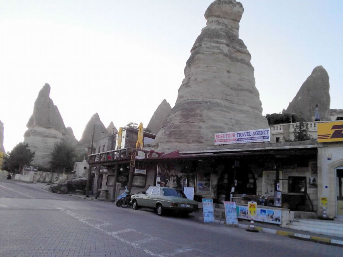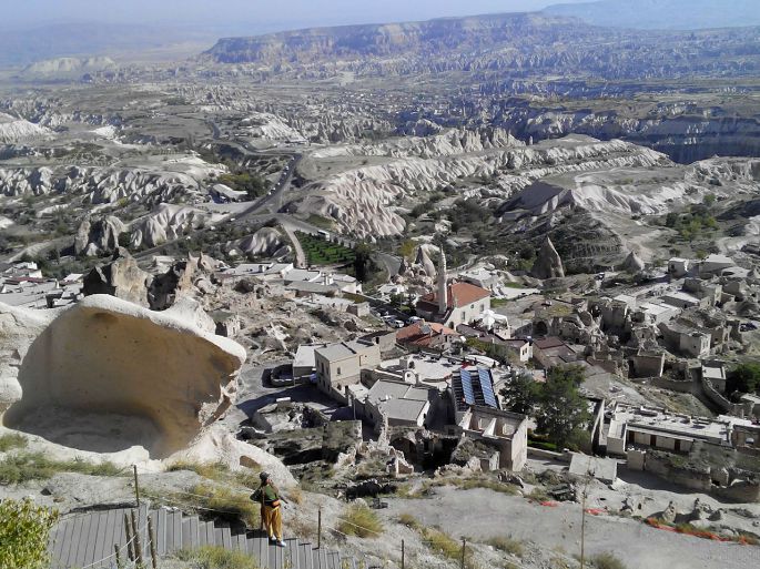 格雷梅是谷底的小镇,而乌其希萨尔则是要塞的最高点,也是地势最高的村落。我们开上公路一直往上走