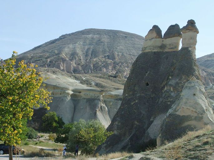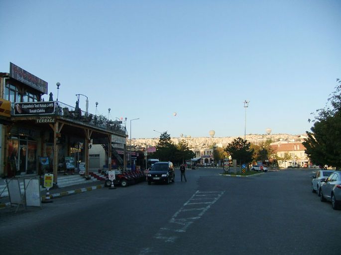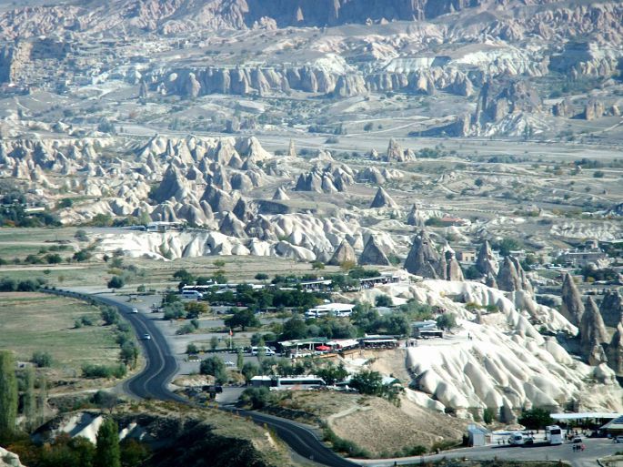 我们没有打算进去参观,一则因为我们中的3位要在4点半回到旅馆去乘热气球,二是露天博物馆的参观主要是看仙人烟囱和石窟教堂,这两样我们已经看过很多了。所以只是站在公路上远眺