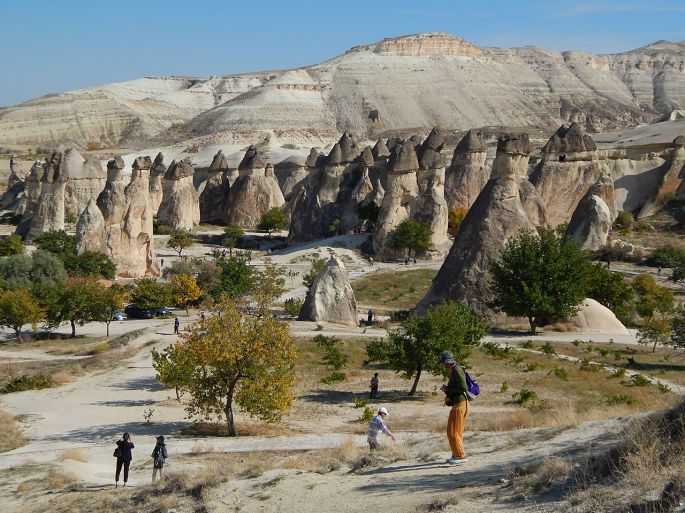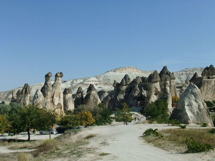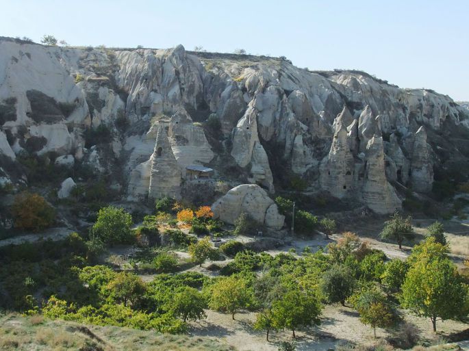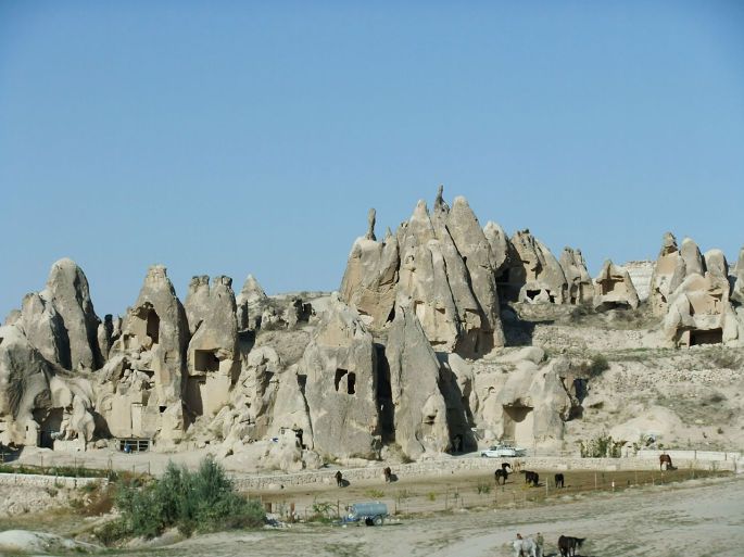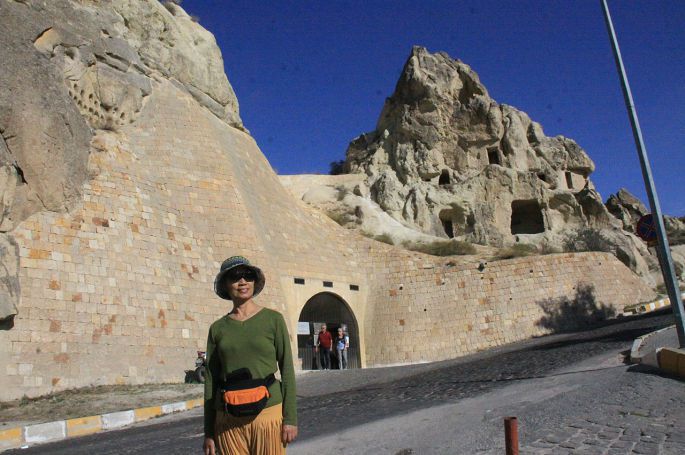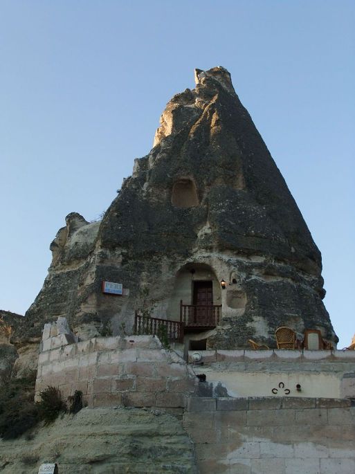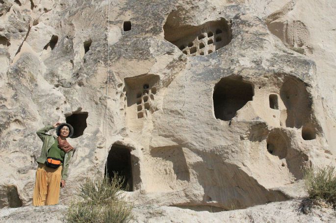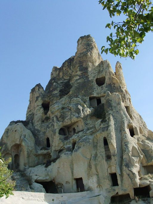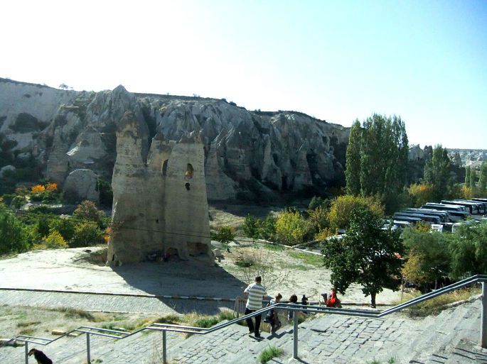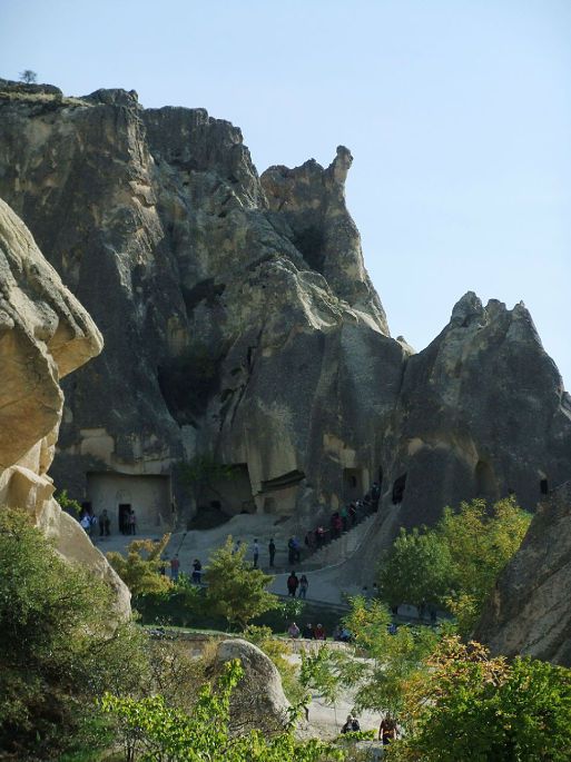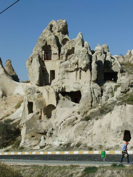 从托卡利教堂出来,回头照了这张照片,可以更清楚地看到岩石上凿出的层层叠叠的各种形式的洞穴