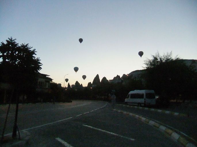 10月9号。早上不到6点我就起来了,他们4人还在睡觉。我不想打搅他们,独自走出旅店,想去拍早上的热气球。