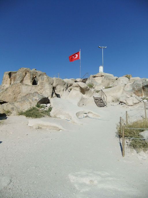 乌其希萨尔堡的山顶上有一面土耳其国旗在飘扬,它似乎在召唤着我们登上山顶。