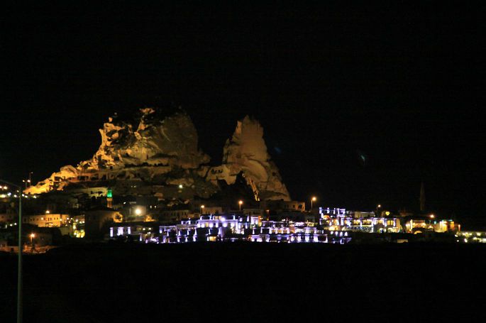 回到旅馆已经8点多了,他们4人已吃完饭。我赶紧吃饭,吃完饭,我们开车去不远的乌其希萨尔城堡(Uchisar Kalesi)。