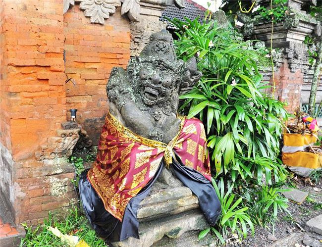 巴厘岛无处不在的神像,多数都穿着不同的沙龙