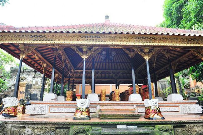 皇宫坐落在素有巴厘岛艺术重镇的乌布市里,皇宫始建于16世纪,由著名的艺术家们一手设计,共有60间房,整座宫殿气势恢宏,特别是大门,宫殿内精致细腻的手工雕刻和贵气逼人的金箔装饰,每年吸引着许多的艺术爱好者们慕名而来,此外在宫殿里还可以欣赏到许多精彩的极具巴厘岛本土特色的传统舞蹈表演,如迎宾舞、假面舞,看妙龄少女舞动着曼妙的身姿,眼神光芒四射,摄人心魄。皇宫里面居住着皇族的后裔,但是他们和平民一样需要自己努力工作以求谋生,如果您想感受巴厘岛极致奢华的皇宫贵族生活,可以选择入住皇宫旅馆,只不过价格昂贵。换的乌布王室居所。晚上庭院中还会上演巴厘传统舞蹈。乌布王室早在20世纪初就被荷兰人废黜,但仍受到广泛的尊敬,在商界和文艺界也举足轻重。