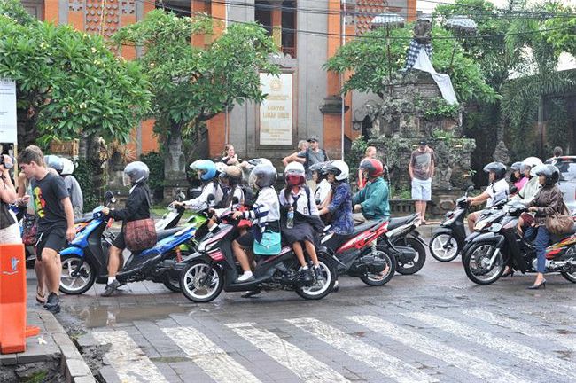 岛上摩托车是主要交通工具