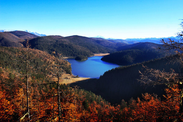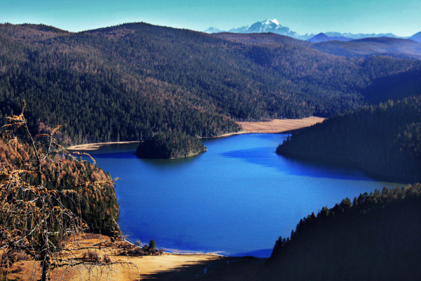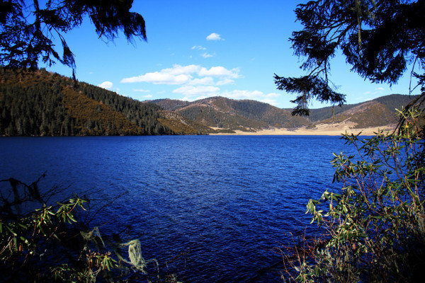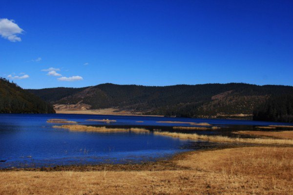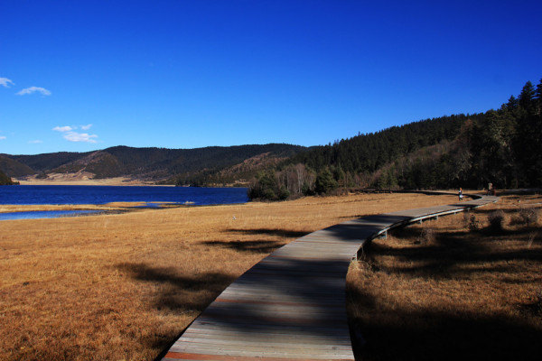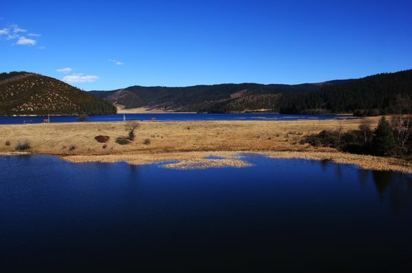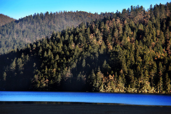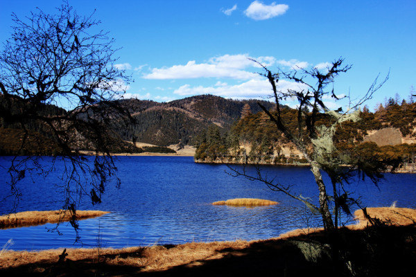 初冬。梦境般的属都湖。没有银装皑皑,确是这么纯粹的湛蓝,有种苍凉在心里升腾,她美的这么不真实。在得以窥见她全貌之前我曾无数次猜想,她是怎样的?真的站在这里了,才知道这种沁人心脾的蓝,动人心魄无以复加——人间仙境普达措