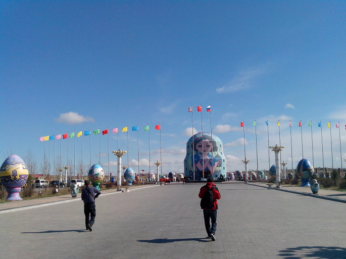 终于离开了泥泞的道路,到达黑山头口岸,继续沿着边境线前往满洲里