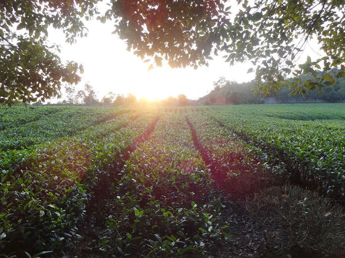 上车,什么天人感应天人合一,什么无极太极,就让它云里雾里去吧。奔驰在秋高气爽的的季节里,车厢中廻荡着欢声笑语。窗外,晚霞映照在茶场上,幻化出别样美丽。突然觉得,怀童心的孩子回家了,贴近田园、上善若水、清静无为的感觉真好!