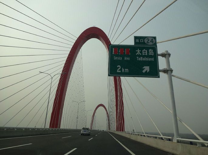 这是刚通车不久的马鞍山长江大桥,那路牌上指示的“太白岛”究竟何方出处?原先没听说过,也无心考证。万花筒般的景像看多了,一切皆有可能。