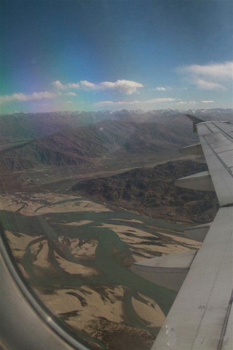 去拉萨,如果是白天的飞机,一定不要只顾睡觉而不看风景哟。从机上俯瞰,雅鲁藏布江纵横交错,宛如绿色的玉带在苍凉的大地上延展,很漂亮吧。