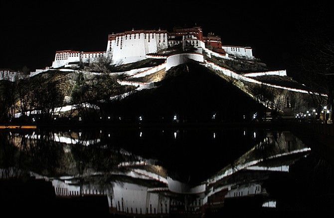 华灯初上,布宫亮起了简单素朴的灯光,更是庄严。
