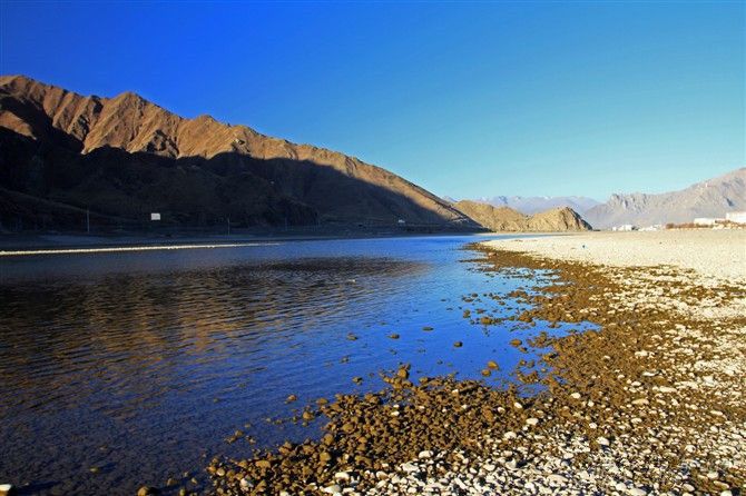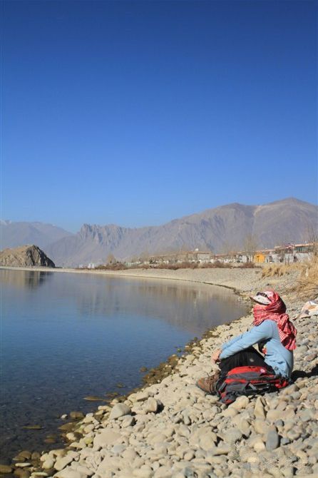 小区后门出去就是拉萨河,安顿好后,我们立马奔拉萨河而去。出了小区,放眼望去,是一条蓝色的河流,河滩布满了鹅卵石,河里还有三两只野鸟。下到河边也挺不容易的,得手脚并用,拉着别人留下的绳索如溪降一般下去。