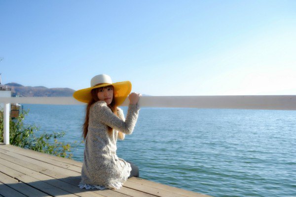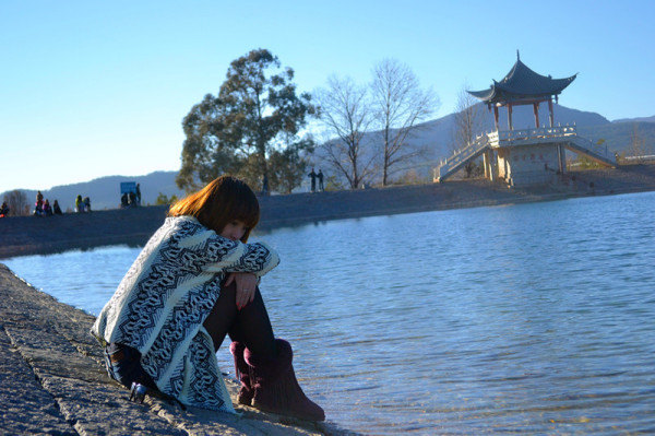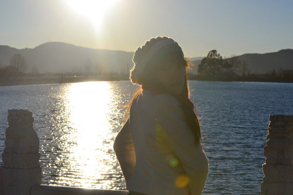 丽江早晚温差大,幸好有个好老公让我欺负,给我带了大衣,换上衣服等日落