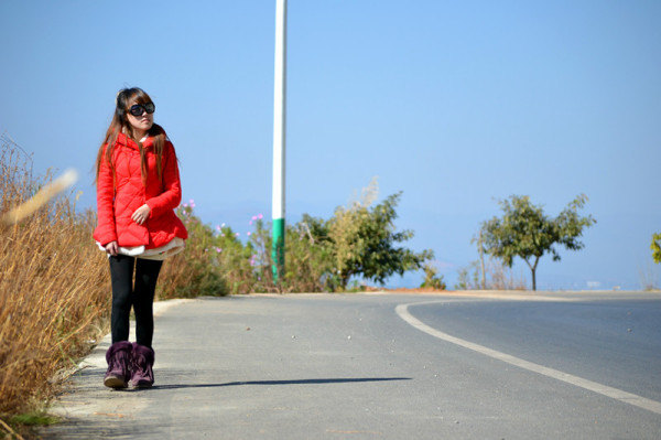 亲们,出门拍照一定得穿鲜艳的。