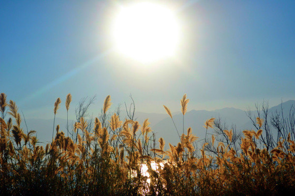 沿途路上许多的芦苇。