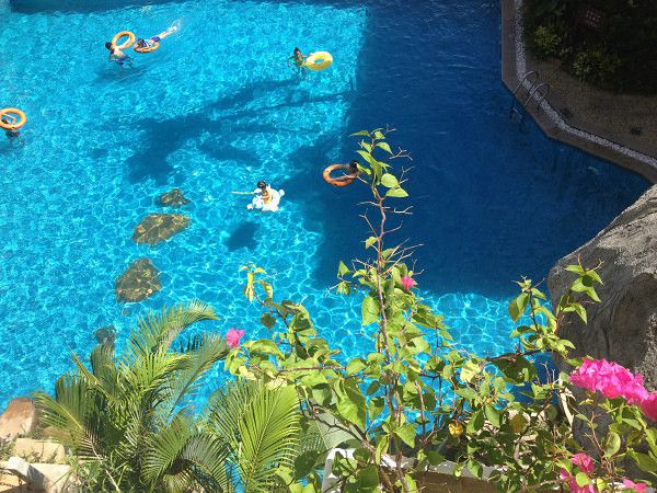今天本来是打算去亚龙湾的,不过,爸妈说昨天一天都在海边玩,今天想在酒店好好休息一下。哎,都怪我考虑不周全,说好是度假的,就是要随心地放松,差点又被我搞成“赶路客”了,真是该打。早餐过后,我以为爸妈回房间休息了呢,谁知人家两老口径直朝院子走去,哦,赏景儿去了。我和LG对视一笑,原来老人这么容易满足呀!回到房间,一打开窗帘,便听见孩童清翠的嬉笑声。原来是几个小朋友在阳台下面的大泳池里玩水呢!看着他们玩,我想到了自己的童年。小孩的世界真的单纯,就是这么简单。我想以后有了孩子我要带她过来,让她有一个快乐的童年。