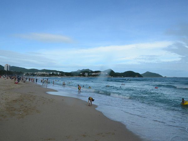 我们决定到海边去玩一玩。虽然早就知道酒店提供免费观光车送客人至沙滩,但我们还是决定散步过去,一来可以仔细欣赏一下庭院美景,二来可以熟悉一下路线。大堂一出来便到了花繁叶茂的庭院,俯视跟身在其中的感觉真是不一样。只觉得花香阵阵,蝴蝶儿绕着花丛翩翩起舞,向上两个台阶,是一个精致的水池,高处一泓闪亮的飞瀑自山石间直泻而下,惹得池中锦鲤欢快地游来游去。环绕在花间小道,曲折向前,一步一回廊,真有种“柳暗花明又一村”的感觉。最独特的是那座水帘瀑布电梯,巧妙地隐藏在花廊的尽头。转瞬之间,已从山顶来到了热闹的市区街道,真有种恍若隔世的感觉。穿过一条马路,很快就到了大东海。