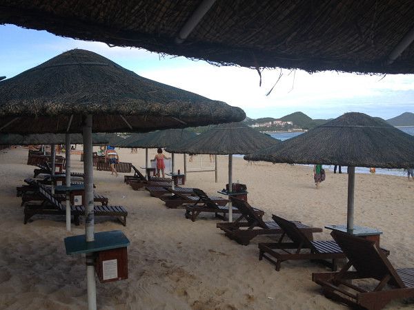 也许是季节的原因,大东海风急浪大,酒店也立了牌子建议客人出于安全考虑,不要泳池。于是,我们只是在躺椅上贪婪地呼吸大海的气息,有家人的地方,一切都感觉那么美好。不知不觉,我竟在海风的轻抚下睡着了。连梦里都是蔚蓝的天空和无际的大海,整个人似飘浮在海天之间。大东海一走上来便是夏日美食广场,看起来人头攒动,想来生意应该不错吧。吃完中餐,我们便散步回酒店了。