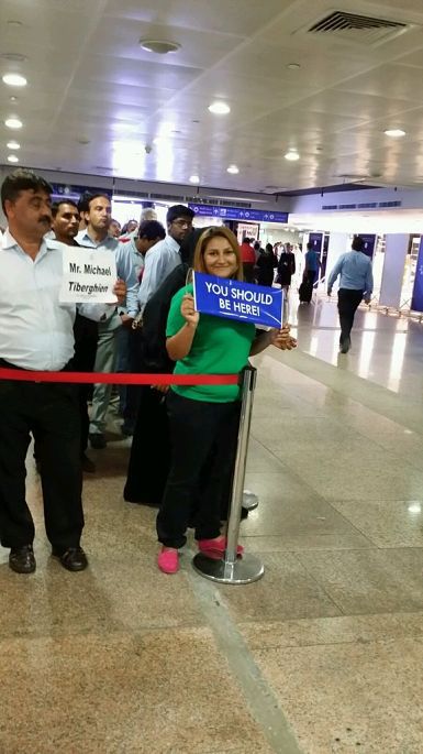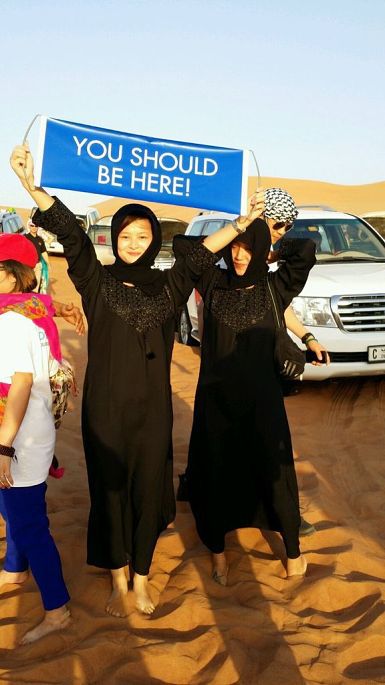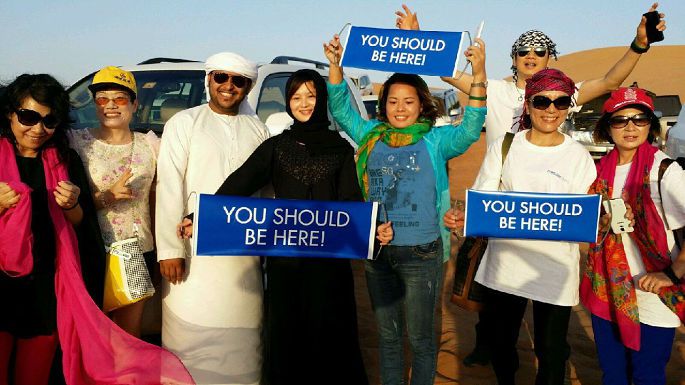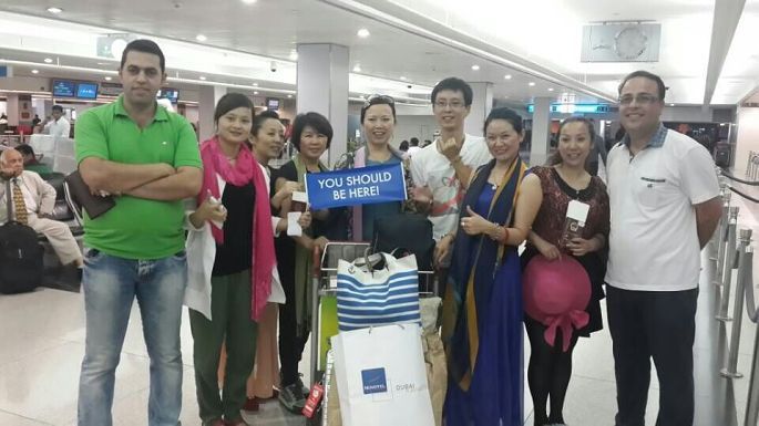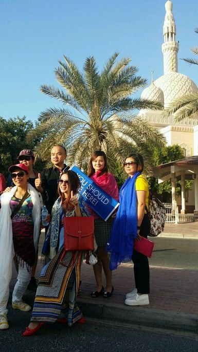 当地时间7:20,我们到达迪拜国际机场,出海关用了两个小时,我们一直担心,延误了这么久,会不会有人接机呢?怀着忐忑不安的心,来到出口。哇,看到没,工作人员满脸热情的笑,举着蓝色旗子,所有担心都没有了。