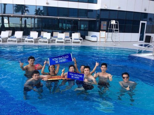 酒店楼顶的泳池不错哦,洗掉了全身的疲惫。