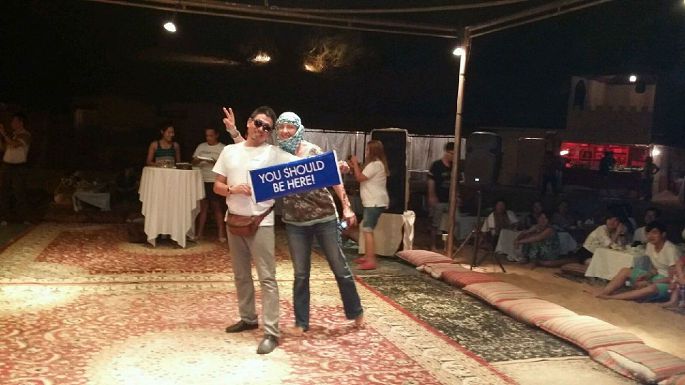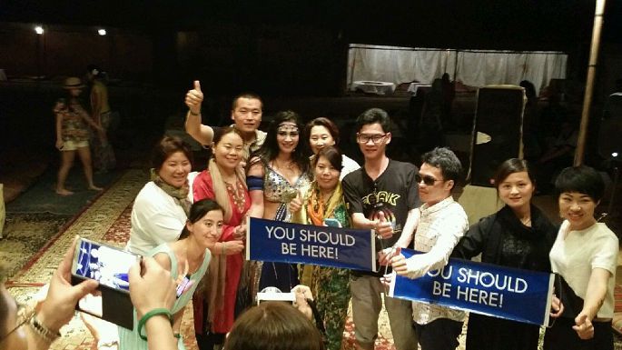 免费享受人体彩绘哦,沙漠晚宴开始。