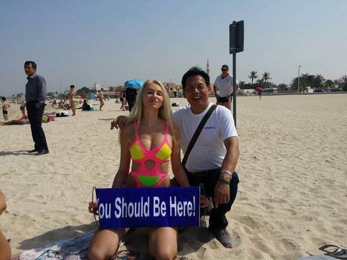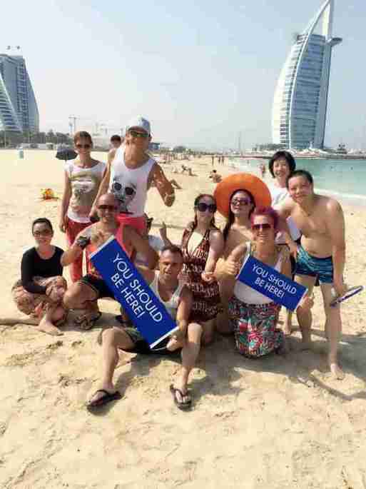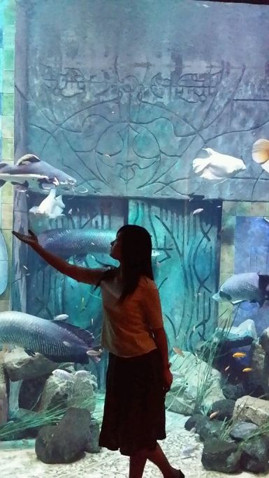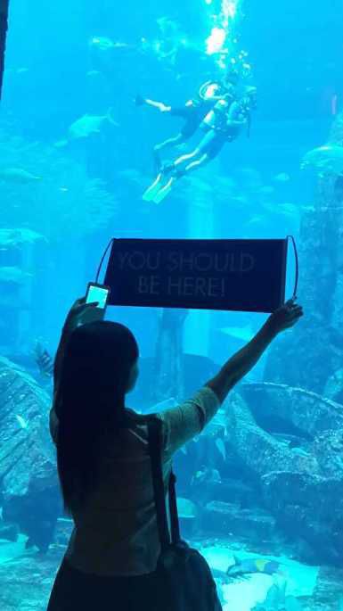 今天是自由行,所有行程和费用自己安排,早餐都在酒店是免费的。但细心的公司将我们住的地方安排的很方便,去哪都近,打车每个人几块钱或走路可到达。整个旅行过程我和大熊家我们4个人一起,所以费用也是除以4的。今天我们商量好了,再去一次棕榈岛,深入到水族馆,打了车过去每人7块人民币左右,门票是168(所有费用都以人民币计算),水族馆里太漂亮啦,我们都舍不得出来啦,静静的坐在里面,享受这一刻人和鱼近距离接触的美妙!下午3:00恋恋不舍的从水族馆回到酒店,大家回到房间分享了从家乡带的美食,各自休息,约好5点出发前往帆船酒店沙滩游泳,看日落,我利用此时间还帮伙伴报了单哦,度假办公两不误。