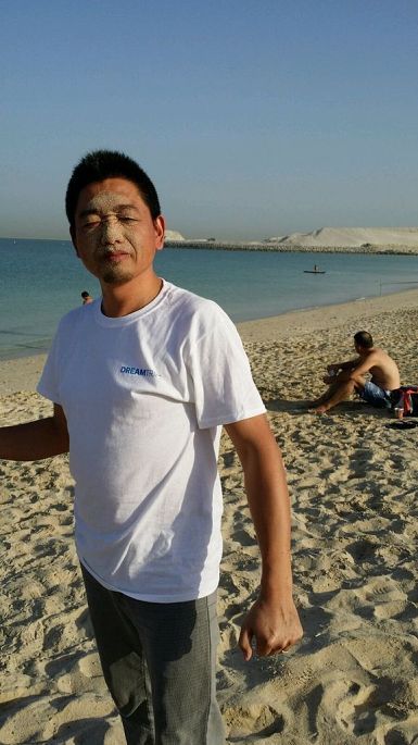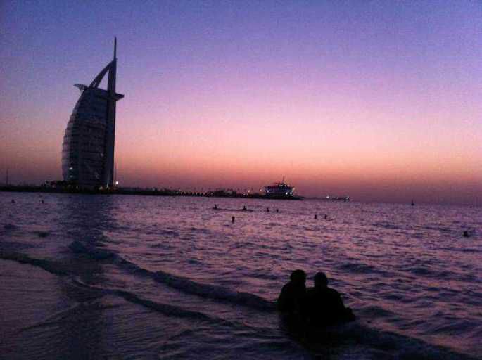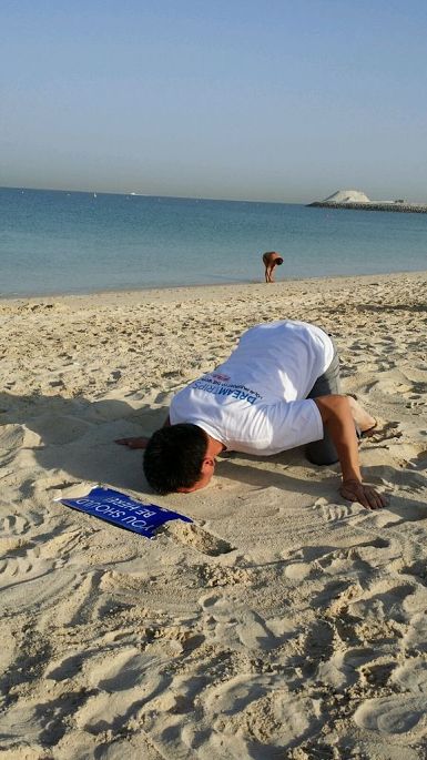 早晨6点,兴奋的起床啦!迎着朝霞,出发,来到沙滩,清晨的风特别凉爽,海里畅游一翻后,在沙滩玩乐起来了,大熊的创意不错吧,还有脸印哦!接下来参观了清真寺,迪拜几乎每隔15分钟路程就有一个清真寺,而且每个整点时间都会放祷告音乐。