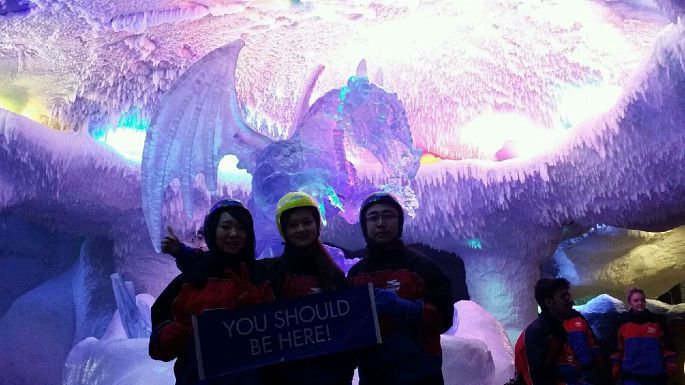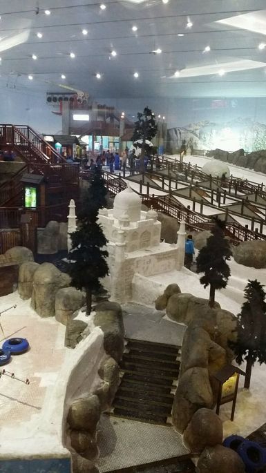 我们回酒店,吃早餐,这边早餐供应到11:00,吃得饱饱的后补个回笼觉咯!约好下午2:00去滑雪啦!我又趁此机会帮伙伴报了单。然后睡了一个多小时,散步约10分钟到达迪拜最大的滑雪场!