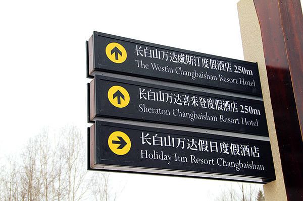 三个酒店的路标, 挨的很近也很方便找。个人觉得度假酒店是性价比比较高的一家,不定时还会推出打折优惠活动。
