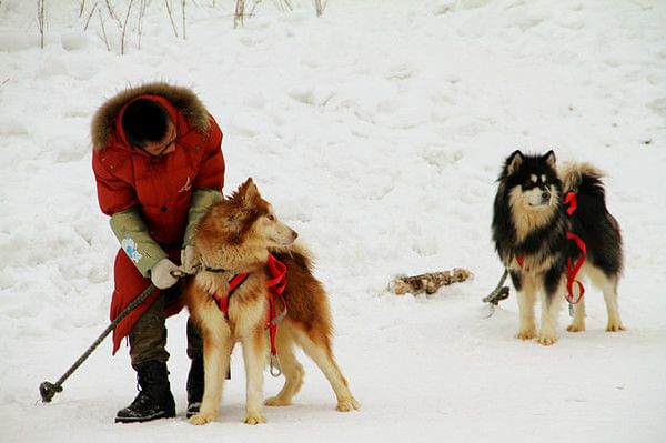 雪地里的狗拉雪橇。阿拉斯加雪橇犬酷毙了。看它们凶猛的样子,一开始我两都战战兢兢地不敢靠近,然后饲养员走过来往我手里撒了一把狗粮,说去吧,它们可乖了。