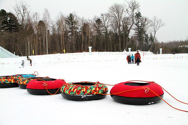 冰雪乐园里有很多可以玩的项目,除了狗拉雪橇,还有冰上滑梯,雪地摩托,碰碰车等等。你还可以在冰上踢足球。