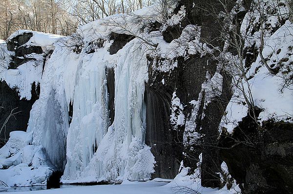 因为冬天天气严寒的关系,就形成了眼前的冰瀑,把动态的流水凝固成了静态的画面,等待来年春天的复苏。