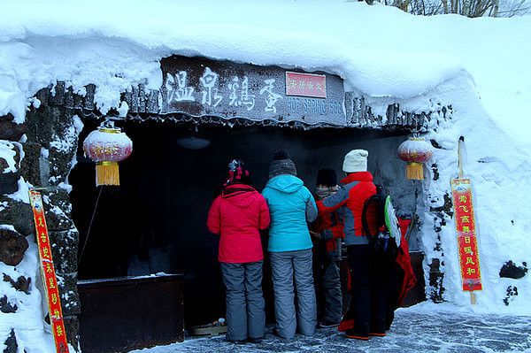 据说这是长白山上唯一的一家温泉煮鸡蛋店,位于北坡。山脚下有摩托艇可以载游客直达,兴致勃勃的不愿意这么快上山,就一路走了上来。 10元三个的温泉鸡蛋果然与众不同,温泉水将鸡蛋的凝固的刚刚好,又软又嫩的。