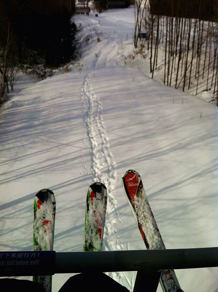 终于到了滑雪的日子,清晨一大早就起了床,在腹部和膝盖上贴了暖宝,穿了很厚的衣服,吃了早餐,穿过酒店的后门就是滑雪场,极其方便。