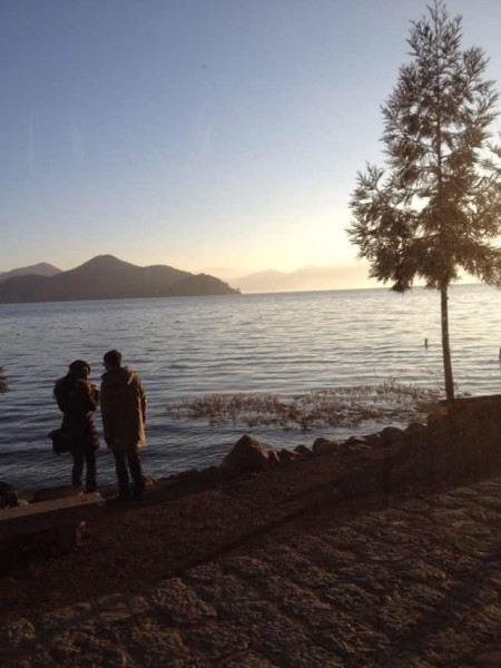路途劳顿,昏睡度过,偶尔醒来看到车窗外一望无际的山川和稀稀落落的房屋炊烟,感觉是到了世外,不知这山中的居民以何为生!下午3点多终于远远看到美丽的泸沽湖,情人湾做了短暂的停留,景致很美,不枉此行~