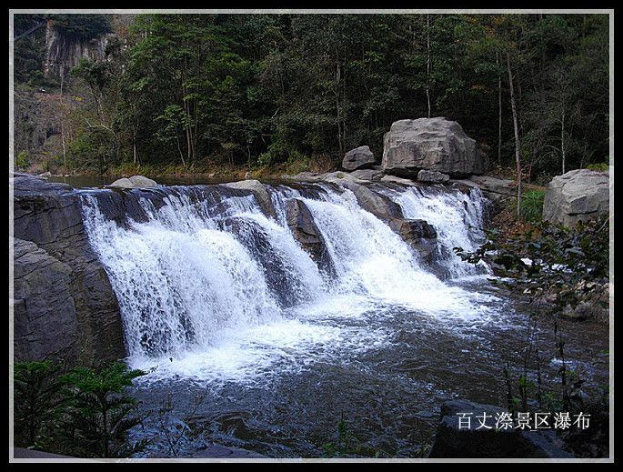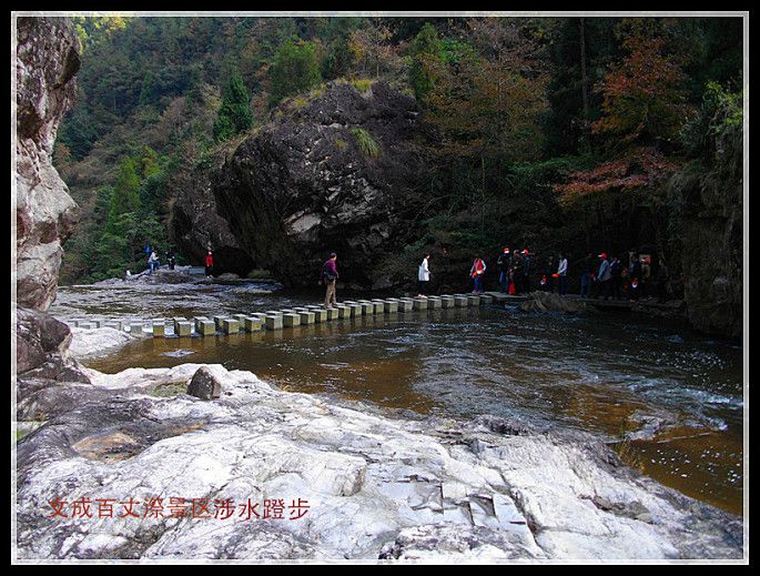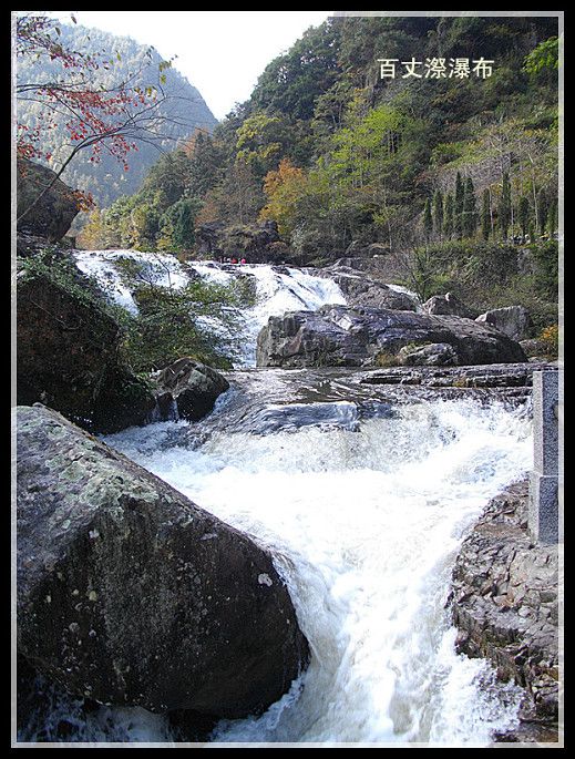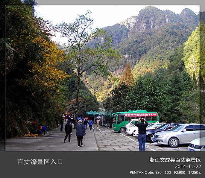 百丈漈离文成县城4公里,面积170平方公里,海拔800米,是洞宫山脉的延伸段。我们本以为百丈漈只是一个瀑布,其实不然。事实上百丈漈是一个风景区和瀑布群的通称。素有“文成百瀑垂挂,而以百丈漈称冠神州”之称。从景区大门进去,我们边走边看,一直到真正的百丈漈大瀑布出现为止,一路上高山峡谷中的溪流和大小瀑布、涉水蹬步连绵不绝,实在令**连忘步。百丈漈风景如画,尤以秋色为美,我们这次去有不少摄影爱好者,带着“长枪短炮”拍得不亦乐乎。