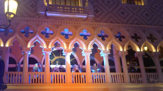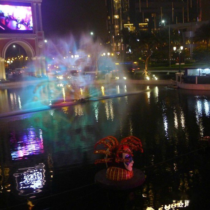 ),本想小试一下运气,但看到别人都是放一叠筹码赌一把,想想自己的钱袋子确实不想丢人现眼,就浏览一遍了事。有幸正赶上“威尼斯人”嘉年华活动,观看各种表演,最赞的是威尼斯人标志性头像的水中表演。