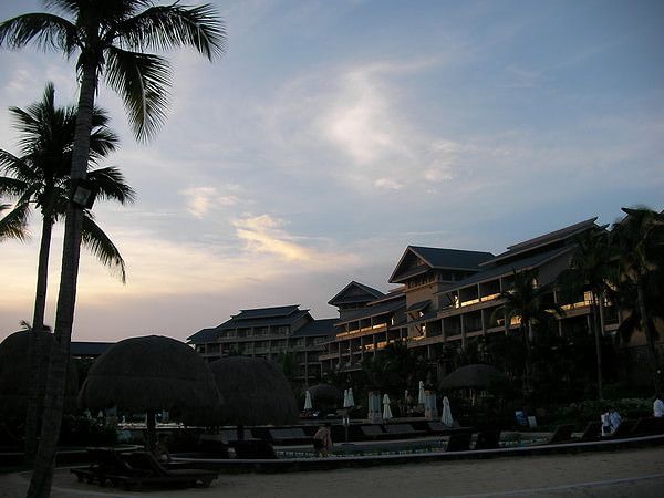 尽管之前出了点状况,但登机那天天气还不错。特别是飞机降落在三亚凤凰机场走出机舱那一刻。呼吸到新鲜的空气,与广州相比三亚的空气真的是好很多。白云蓝天,万里晴空。**的接机很准时,一出机场就看到举牌等候的司机了,同车又接了一对去大东海的年青人,他们也已经出了机场,不用等,45分钟后,我们被送到了三亚亚龙湾希尔顿度假酒店。在前台办理好酒店入住手续以后,酒店人员就帮我们把行李搬到房间。看房间以后,真心的喜欢。这次是来度蜜月的,跟酒店说希望可以布置一下蜜月房间。坐飞机也累了,所以到房间以后我们就整理行李就休息了。下午就在酒店后面的亚龙湾游玩,亚龙湾是个好地方,后面再去其他地方的海感觉都不过如此,以后再来可以就呆在亚龙湾的。亚龙湾的各个酒店都是靠亚龙湾想通,彼此可以串门的,呵呵。