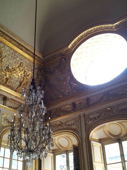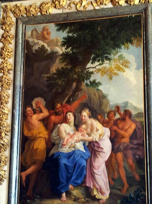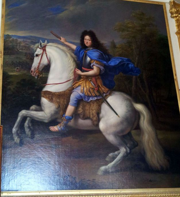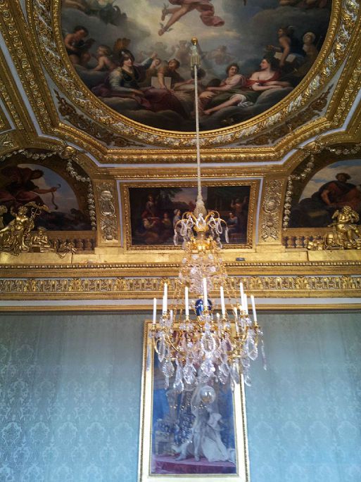 天花顶上描着歌颂太阳王易十四功德的油画。