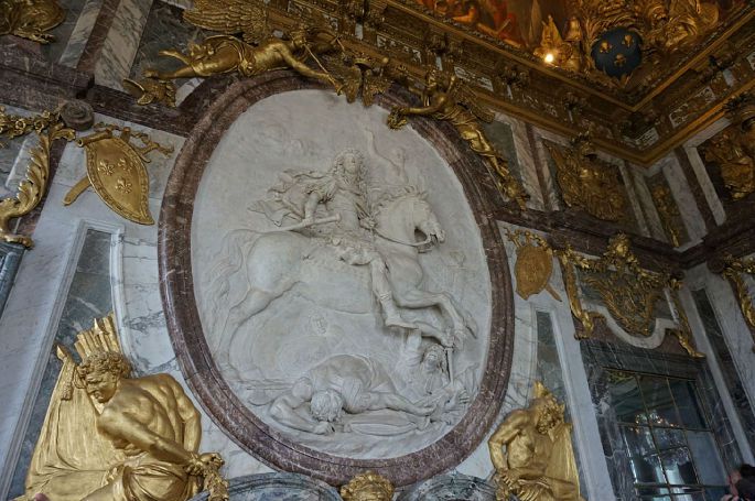 勒布郎和他的几百名工匠极尽奢华地用壁画、大理石、镀金木板雕刻装饰了凡尔赛宫内部的每一条壁带、每一处檐口、每一寸天花板和每一扇门。
