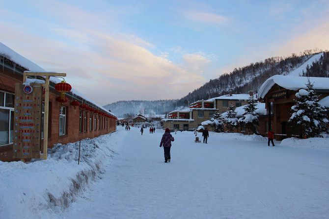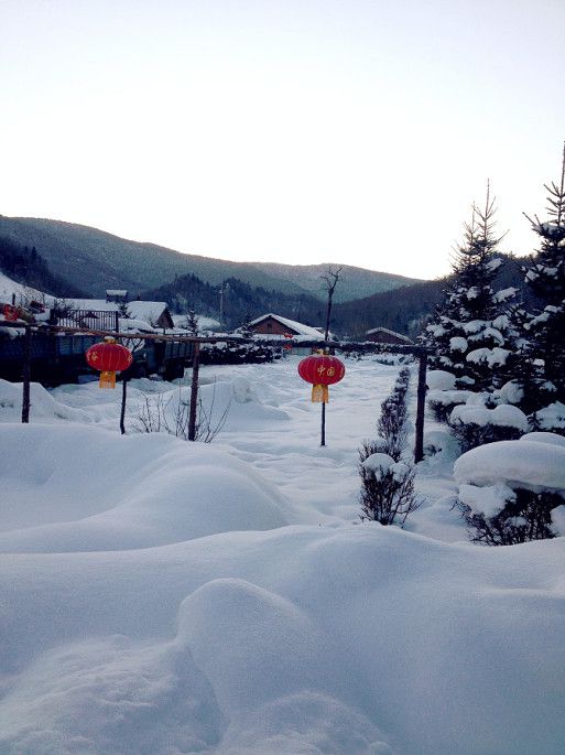 雪乡里比较商业话,只要是靠上边的全都要钱,有梦幻家园、狗拉爬犁(不坐跟狗照样也要钱)、滑雪、滑轮胎、登羊草山看日出或者日落,个人建议登羊草山看日出(可以省钱,正常登山要坐履带车要300多一个人,我们是早上4点多起来徒步上山,8点多下来的,门票没花钱,哈哈)